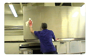 We use a common non-steam method of cleaning an exhaust system, which consist in using a strong degreaser sprayed onto the walls of the exhaust system followed by scraping off of the grease with special tools made for the job. This is an effective and economic method of achieving a “bare metal” cleaned system, which is the required standard given by the fire department.