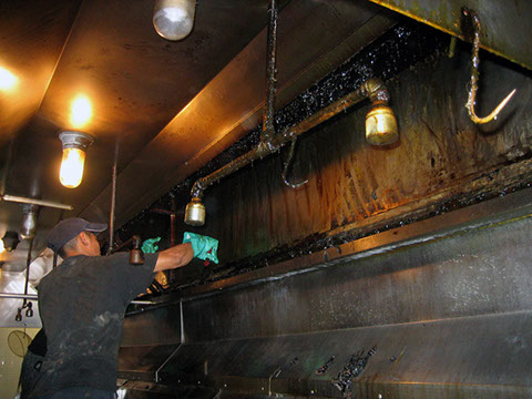 FIRE CODE: The following is the National Fire Protection Code #96 section 8-31: "Hoods, grease removal devices (Such as filters), fans, ducts and other appurtenances (accessories) shall be cleaned to BARE METAL at frequent intervals prior to the surfaces becoming heavily contaminated with greaser or oily sludge".